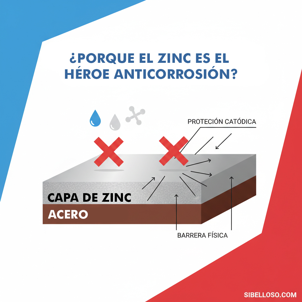 Si la capa se daña ligeramente, el zinc se oxida antes que el acero, protegiéndolo incluso en zonas donde el recubrimiento no es perfecto.