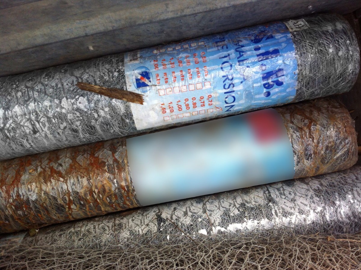 En la foto superior se puede ver que un mal almacenado puede dañar la malla si no es de calidad. En este caso un rollo de malla de otra empresa no ha sobrevivido al almacenaje con humedad, pero en nuestro caso, al ser la malla de Suministros industriales Belloso, una malla galvanizada en caliente, un mal almacenaje no ha afectado a la malla ya que la calidad del galvanizado también influye.